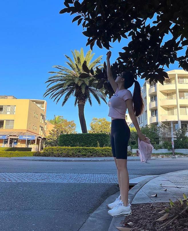 5.분홍 크롭티와 레깅스 5부 바지로 호주에서의 런닝 패션