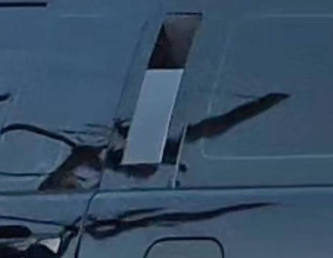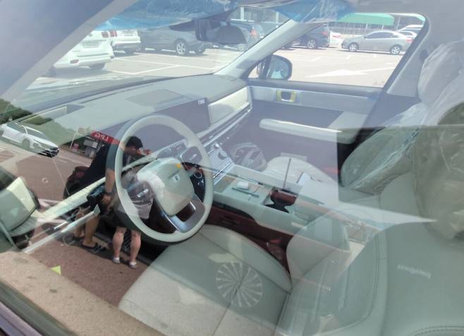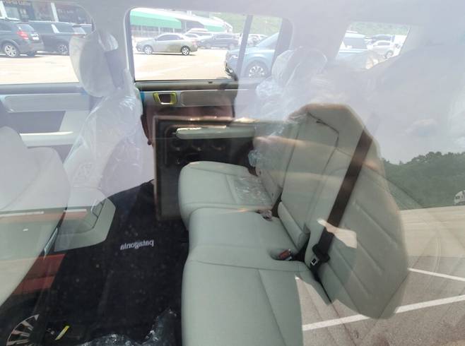 사진에는 파팅라인을 중점으로 상단 부분이 안쪽으로 개폐되는 모습을 볼 수 있는데, 이를 두고 수납 공간이냐, 3열 승객을 위한 수납 창문이냐 논란이 생기고 있다.