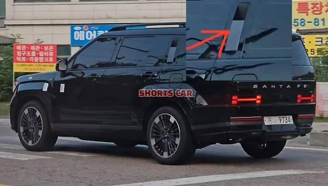 곳곳에서 포착되고 있는 싼타페 풀체인지 테스트카에는 C필러와 3열 쿼터글래스 사이에 있는 직사각형 파츠가 단순히 장식요소가 아닌 기능이 있는 것으로 알려졌다.