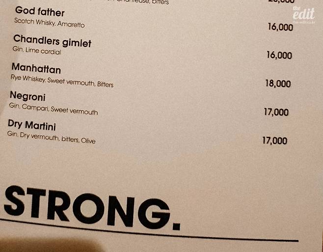 이렇게 주문한다면 괜히 잘 모르는 메뉴를 붙잡고 씨름하는 것보다, 원하는 칵테일이 나올 확률도 훨씬 높아지고 능숙하게 주문하는 멋진 모습도 뽐낼 수 있을 거다.