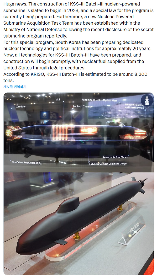 해외 군사 매체 조나 밀리타르(Zona Militar)와 X(구 트위터)를 통해 공개된 정보에 따르면, 한국 국방부는 이미 핵잠 획득 전담팀을 신설했고, 특별법 제정도 준비 중이라고 합니다.