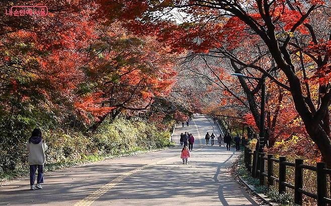 ์ง๊ธ, ์์ธ ํ๋ณตํ์ด ๋ถ๊ฒ ๋ฌผ๋ค๊ณ ์์ต๋๋ค. ๋ฉ๋ฆฌ ๊ฐ์ง ์์๋ ์ข์ต๋๋ค. ์์ธ ๋์ฌ ์์์ ๊ฐ์ฅ ์ง๊ณ ๊ณ ์ด ๋จํ์ ๋ณผ ์ ์๋ ๊ณณ. ๋ฐ๋ก ๋จ์ฐ๊ณต์์ ๋๋ค.