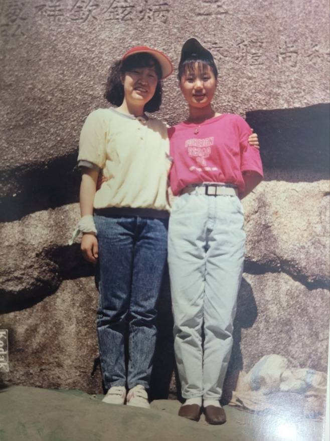 | ▲ 해직 된 안미영 교사와 함께(오른쪽이 정현숙) <우리교육>에 입사하도록 권유한 안미영 교사와 1989년 졸업여행으로 간 설악산에서 찍은 사진. 왼쪽이 안미영 교사, 오른쪽이 정현숙 |
