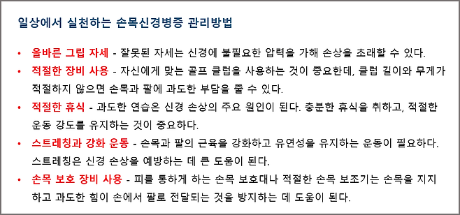 주니어 골프 선수들의 신경은 탄력이 있어서 일반적으로 손의 신경 손상이 드물다. 하지만, 요골신경표피 손상이 발생하면 경기력에 큰 지장을 줄 수 있다. 이는 올바른 예방과 적절한 관리를 통해 충분히 피할 수 있으므로, 부모와 코치의 세심한 관심이 필요하다.