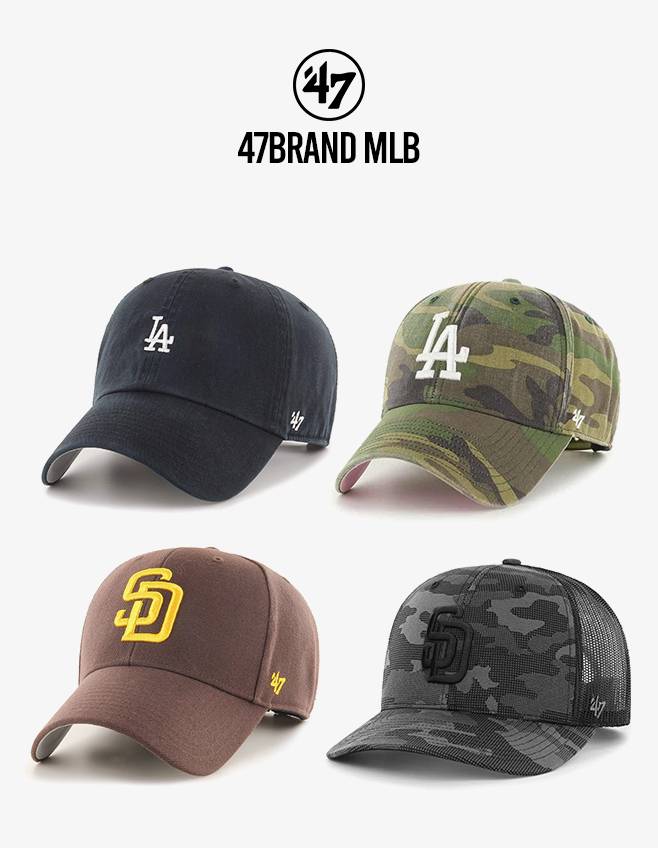 47브랜드는 미국의 스포츠 패션 업체로 MLB,NFL,NBA,NHL 등 프로 스포츠 리그 공식 파트너입니다. MLB 팀들의 모자를 47브랜드로 만나보세요!