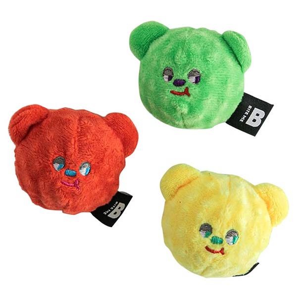 추억의 사탕을 닮은 곰돌이 모양 삑삑이입니다. 빨강, 노랑, 초록 3가지 색상이 한 세트로 들어있으며, 강아지가 망가뜨려도 괜찮도록 솜 대신 삑삑이 공이 들어있습니다. 공의 지름은 약 5.5cm로 중대형견보다는 소형견이 갖고 놀기에 적합해요.