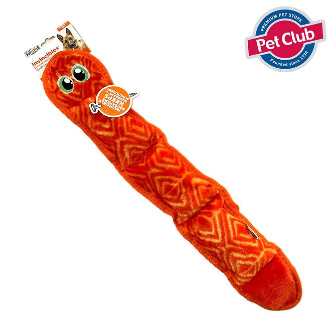 강아지가 물었을 때 재밌는 소리가 나는 뱀 모양 삑삑이예요. 꼼꼼한 2중 스티치로 마감하여 튼튼하며, 내부는 Dura-Tuff 안감을 사용하여 독특하게 디자인되었습니다. 충전재가 없어 솜이 삐져나올 염려가 없기에 강아지가 마음껏 물고 뜯으면 놀 수 있어요.