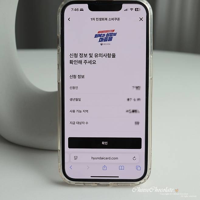 잘 쓰는 현대카드로 지원금 받아봤어요.
