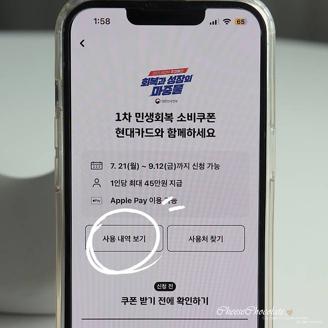 그리고 현대카드 앱에서 민생회복 소비쿠폰의
