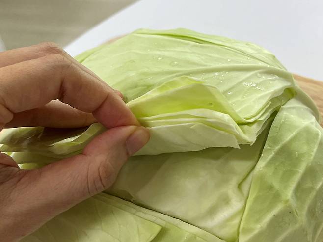 이곳의 잎은 얇고 두께가 균일한 편입니다. 그래서 양배추 쌈을 할 때 모양도 균일하여 정갈한 느낌을 줍니다.