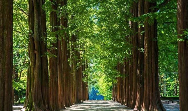 가장 대표적인 명소는 메타세쿼이아 길이다. 1970년대 서울대학교 농업대학에서 가져온 묘목을 심은 것이 오늘날의 장대한 숲길로 자라나 사시사철 색다른 풍경을 보여준다.