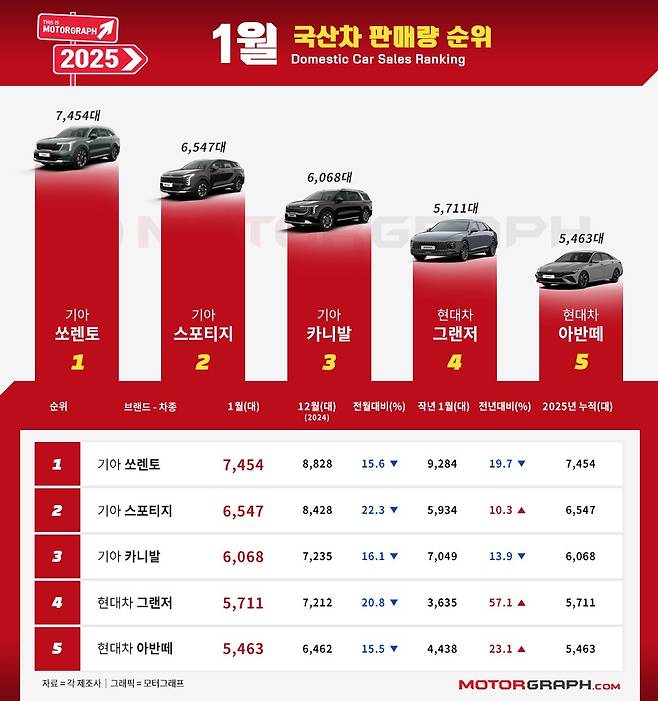 2025년 9월 국내 자동차 판매량 순위를 보면 기아 쏘렌토가 8,978대로 1위를 차지했고, 테슬라 모델Y는 수입차 부문 1위를 지켰지만 전체 순위에서는 쏘렌토에 밀렸다. 이는 국산 SUV, 특히 하이브리드 모델들이 전기차에 대한 강력한 대안으로 부상하고 있음을 보여준다.