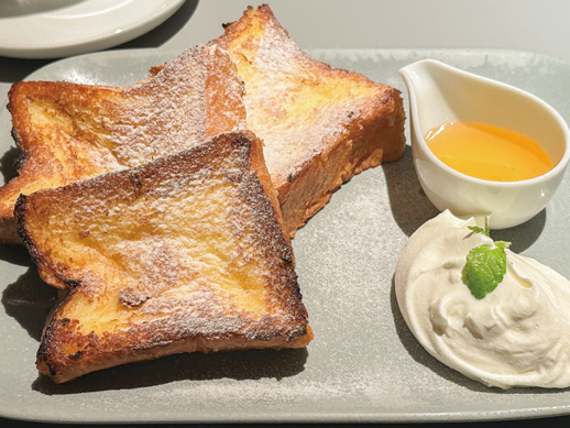 2010년대 초반부터 서서히 번지기 시작해 지금은 팬케이크에 버금가는 인기를 누리고 있는 아이템이 된 프렌치토스트! 일본의 프렌치토스트는 두툼하고 부드러운 빵을 계란물에 푹 적셔 천천히 구워내는 것이 특징으로, 부드럽고 촉촉한 질감을 가진 게 아주 일품입니다.