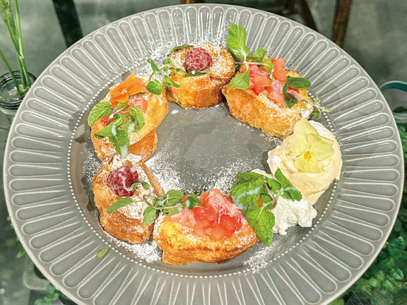 "꽃의 향연 속에서 즐기는 프렌치토스트"