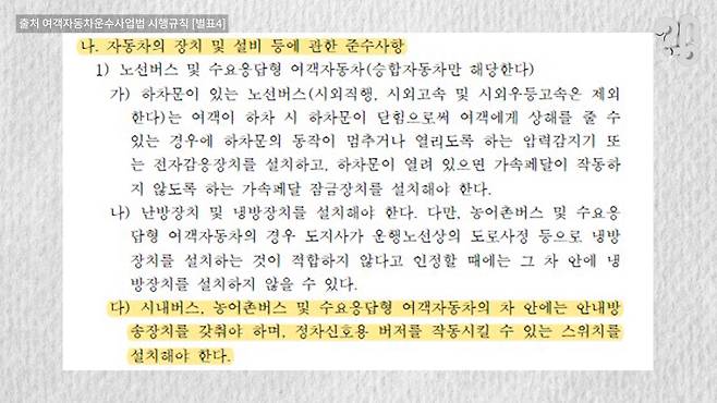 결론부터 말하면, 버스 내 하차벨을 설치하는 거 자체는 법으로 정한 의무사항인데 하차벨 설치 위치나 개수에 대한 구체적인 기준이 없다.