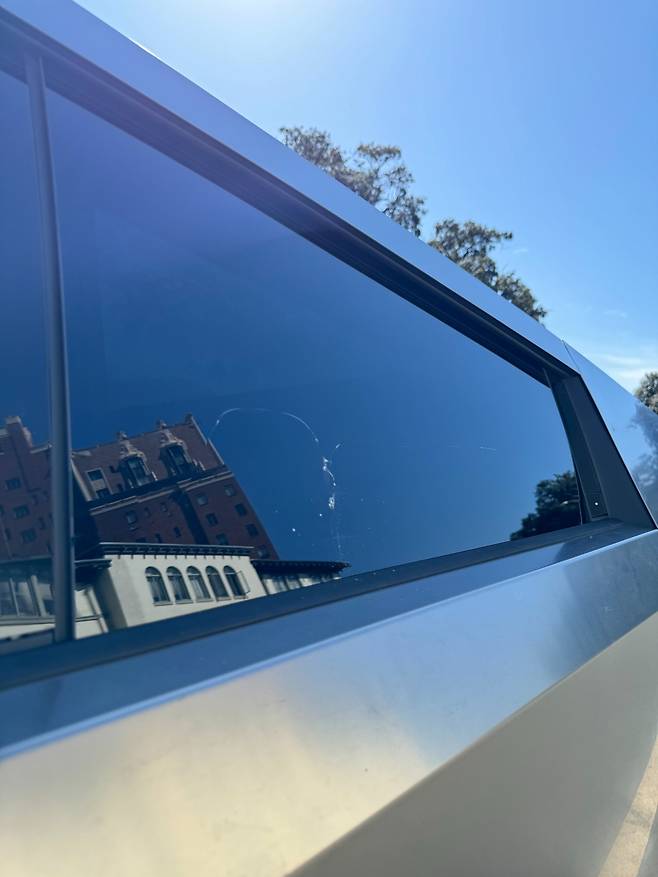 테슬라는 사이버트럭이 돌덩어리는 물론 4급 우박까지 견딜 수 있는 ‘장갑 유리창’을 장착했다고 밝혔다.