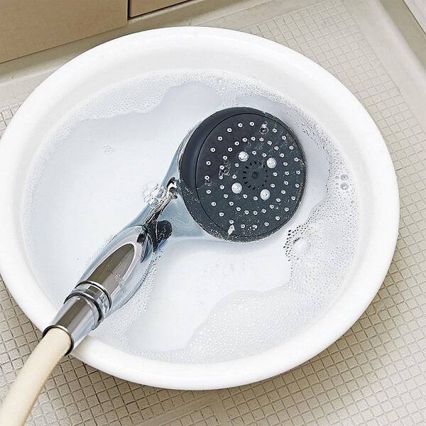 샤워기 헤드를 1~2시간 담가두면 석회질, 물때가 자연스럽게 녹습니다.