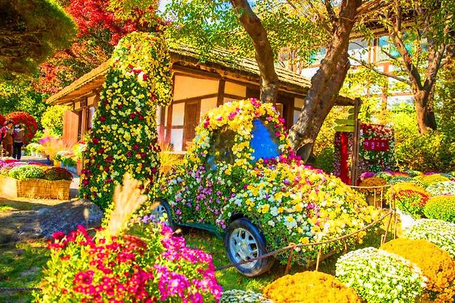 국화꽃이 만개한 추억 저장소를 주제로 한 <제25회 아침고요 국화전시회>는 원내 '산수경온실'과 '고향집정원'에서 개최됩니다.