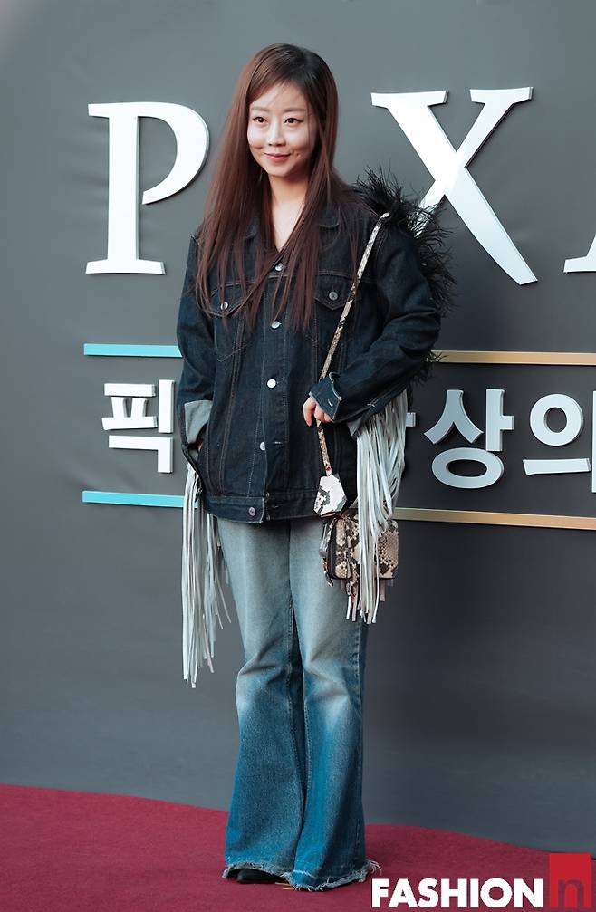 이날 양파는 긴 헤어 스타일에 데님 팬츠에 오버핏 데님 셔츠재킷을 걸친 청청패션에 프린지 스타일이 돋보이는 나들이룩으로 힙하면서도 멋스러운 패션을 완성했다.