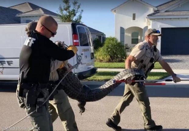 거의 8피트(약 2m 43cm)의 몸길이를 가진 악어를 옮기는 것은 쉬운 일이 아니었지만, 몇 분간의 사투 끝에 다행히 악어는 포획돼 더 안전한 곳으로 옮겨졌다.