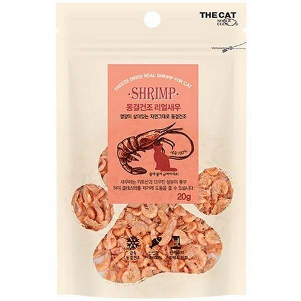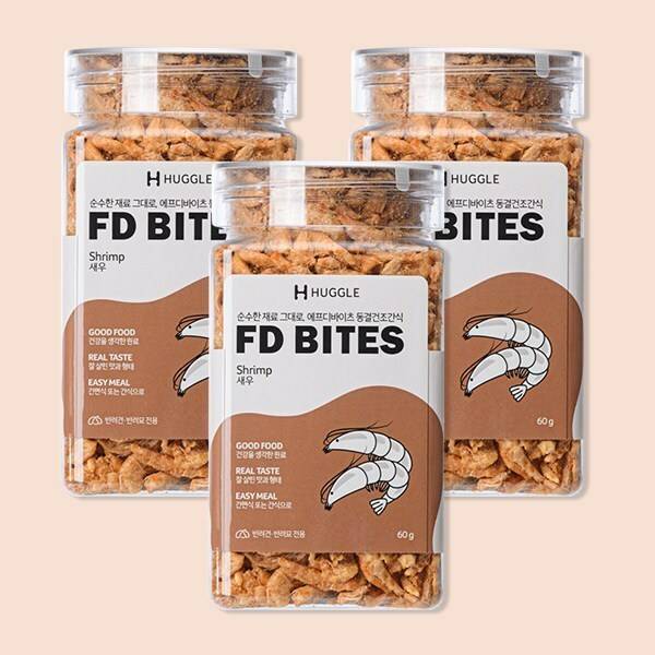새우 모양이 그대로 보이는 동결건조 간식으로, 미국사료관리협회(AAFCO)에서 권장하는 10가지 필수 아미노산이 포함돼 있다고 합니다. 60g 제품이 3개 한 세트로 오래 급여하기에도 좋답니다.
