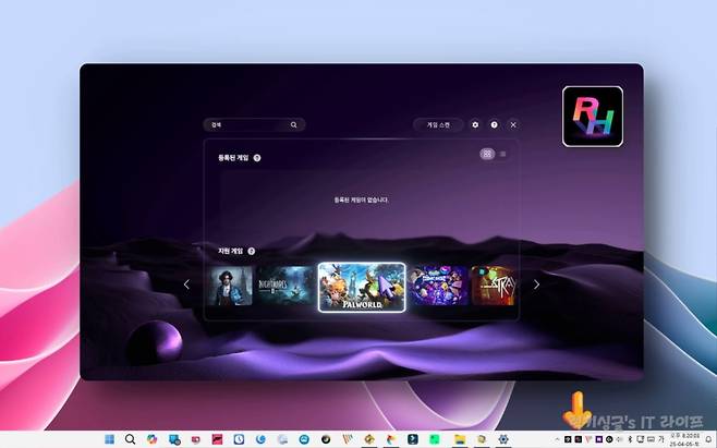 삼성 닷컴 홈페이지에서 오디세이 3D 허브 프로그램 다운로드해서 설치하는 것도 필수 조건인데요. 윈도우 바탕화면과 시스템 트레이에 오디세이 3D 허브와 SR Dashboard 두 가지 프로그램이 자동 실행돼 있는 것을 알 수 있어요. 오디세이 3D 허브를 실행하면 3D 입체 영상으로 플레이할 수 있는 지원 게임 타이틀을 살펴볼 수 있더라고요.