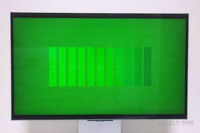 빨간색 (Red), 초록색 (Green), 파란색 (Blue) 3가지 RGB 색상별로 디테일한 밝기 구분 표현을 점검할 수 있는 색상비 테스트와 중간 톤 조절 성능을 확인할 수 있는 감마 테스트 역시 함께 진행했는데요. 각 색상별로 0~100%까지 26단계 밝기 농도 표현과 1.0~3.0까지 11단계 모니터 감마 역시 정확하게 표현되는 것을 확인할 수 있었어요.