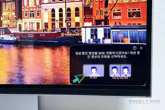 이번에는 영상 화면을 실시간 분석해서 모니터 주변으로 공간감을 확장해 주는 Edge lighting 조명 효과 기능과 5W 듀얼 내장 스피커를 이용해서 4K HDR 영상을 AI 3D 변환으로 감상해 봤어요.