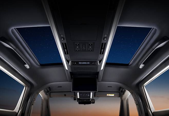 2열 오버헤드 콘솔부에는 14인치 대형 디스플레이를 장착, 유튜브와 넷플릭스, 티빙 등 다양한 OTT를 시청할 수 있고 HDMI와 스마트폰 미라캐스트 등을 통해 외부 기기도 쉽게 연동할 수 있어 개인이 소장하고 있는 콘텐츠 감상도 가능하다.