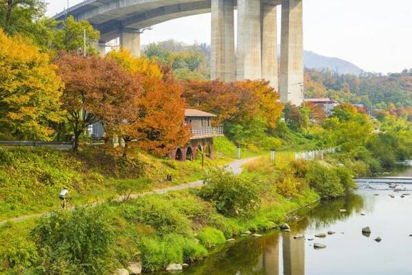 하천변을 따라 조성된 자전거길과 보행로는 시민들의 휴식 공간으로 사랑받고 있습니다. 특히 봄철 벚꽃 시즌에는 충훈 벚꽃 축제가 열려 로맨틱한 분위기를 자아냅니다.