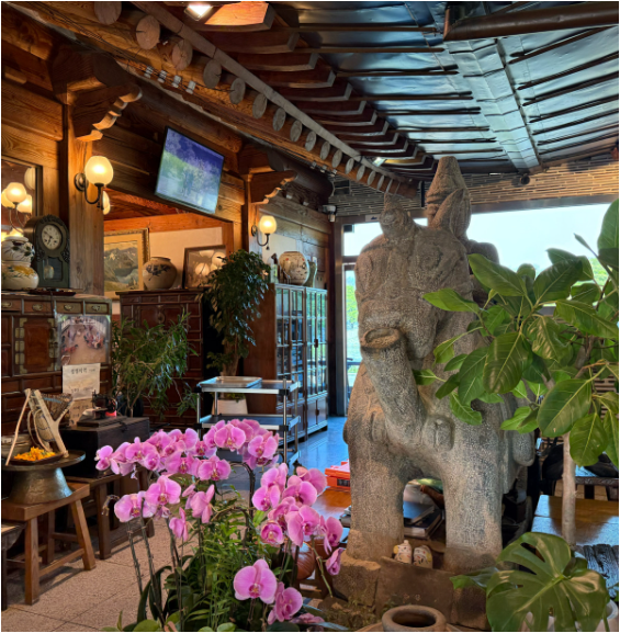 도심에서 벗어난 위치지만, 넓은 주차장이 마련되어 있어 주말 가족 모임이나 단체 방문에도 전혀 불편함이 없습니다. 내부는 좌식과 입식이 모두 가능하며, 테이블 간 간격도 넓어 편안한 식사를 즐길 수 있는 구조입니다. 특히 야외 테이블에서는 연꽃 정원과 장독대, 말 조형물 등 아름다운 풍경과 함께 식사가 가능해 인생 사진을 남기기에도 제격입니다.