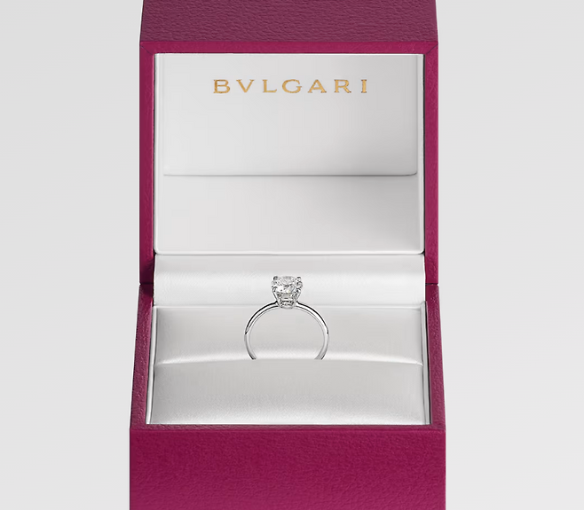 김지민이 받은 불가리의 웨딩 링은 ‘로마 아모르 플래티넘 링’으로, 라운드 브릴리언트 컷 다이아몬드가 세팅된 제품이다.