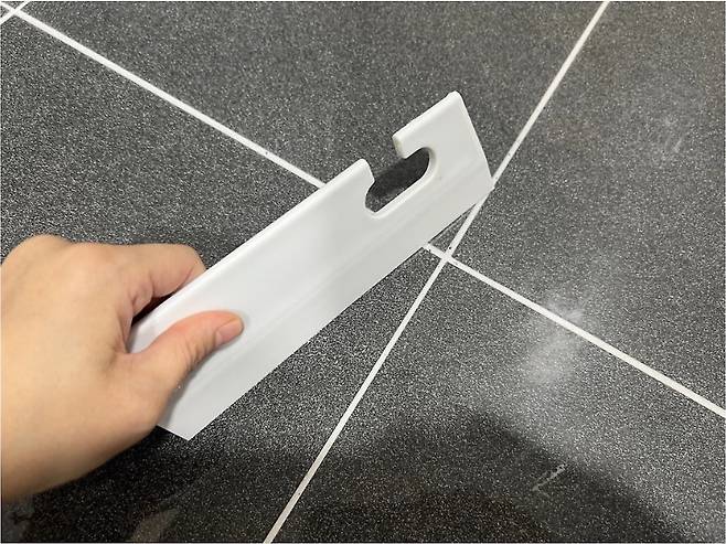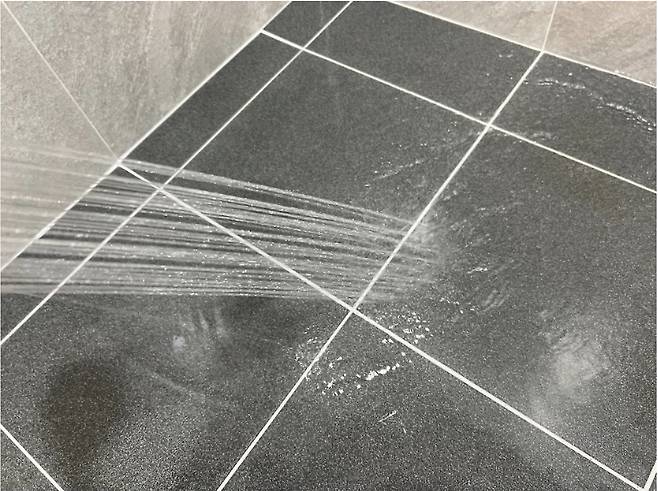 물이 흥건한 욕실에 물기제거기로 쓱쓱~ 여러 번 밀어주면 물기 완벽 제거!!