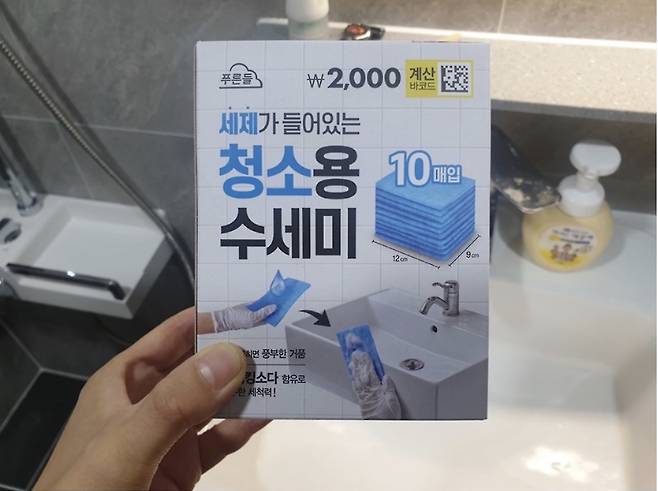 이거 한번 사용하고 나서는 욕실청소할 때는 이 수세미만 사용해요