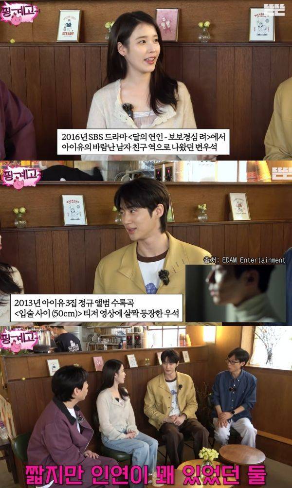 그러자 아이유와 변우석은 서로의 얼굴을 바라보고 웃더니, 사실 10년 전에 이미 작품으로 연이 닿았던 적이 있다고 밝혔다.