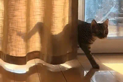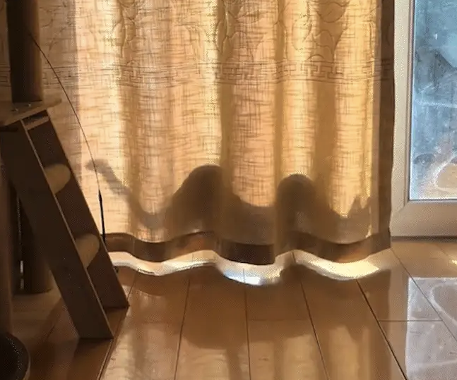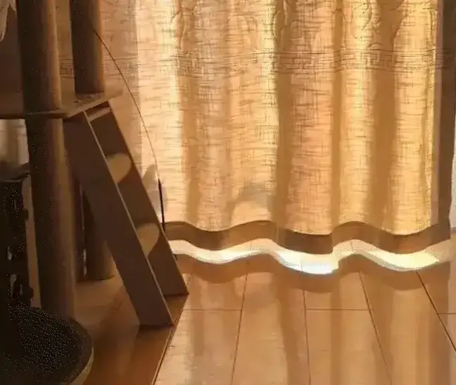 어느 견주는 집에서 쉬다가 문득 시야에 들어온 고양이가 커튼 뒤에서 신나게 장난치는 모습을 보았습니다.