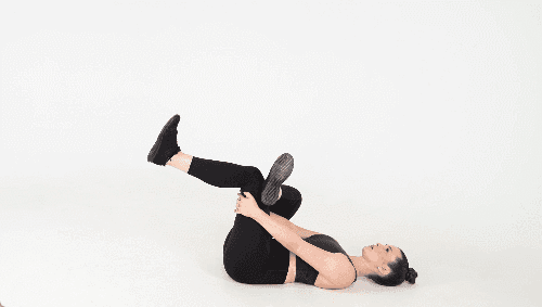 매트에 등을 대고 눕습니다. 왼쪽 무릎을 세우고, 오른쪽 다리를 왼쪽 다리 위로 교차시킵니다. 두 다리가 만들어낸 공간으로 양손을 넣어, 왼쪽 허벅지 뒤를 잡습니다. 허벅지를 가슴 쪽으로 부드럽게 당기며 스트레칭을 합니다. 다리 위치를 바꿔서 운동하세요.