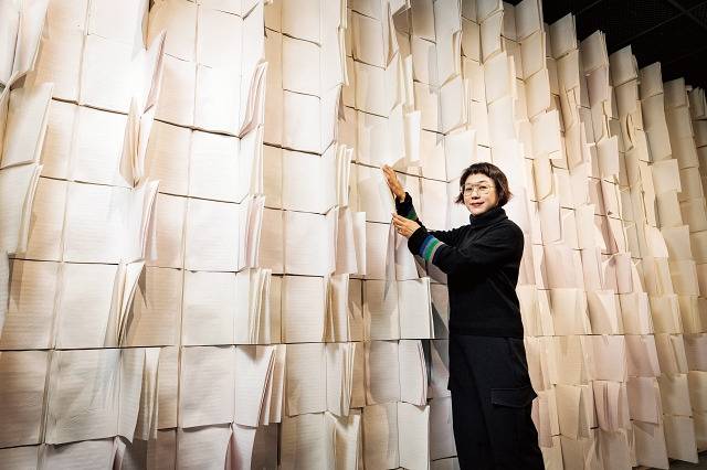 지난해 12월 문을 연 모두미술공간(서울 중구)의 개막작 예술감독을 엄 작가가 맡은 것은 자연스러운 일이었습니다. 모두미술공간은 국내 최초의 장애예술인 표준전시장입니다. 장애예술인들의 작품을 누구나 쉽게 감상할 수 있도록 정부가 나서 조성했습니다. 개막작 '감각한 차이'에선 세상을 자신만의 해상도로 바라보는 이들의 작품 다섯 점을 선보입니다. 엄 작가는 다양한 장애를 가진 예술인 4인과 비장애예술인 2인의 이야기를 한데 모았습니다. 그는 "장애는 부족함이 아니라 세상을 다르게 감각하는 차이일 뿐"이라며 "그 다름에서 비장애인이 생각해낼 수 없는 창의력이 나온다"고 했습니다. 엄 작가를 따라간 전시장. 그가 300여 권의 점자책으로 연출한 설치작 '감각의 벽'과 마주했습니다.