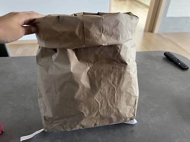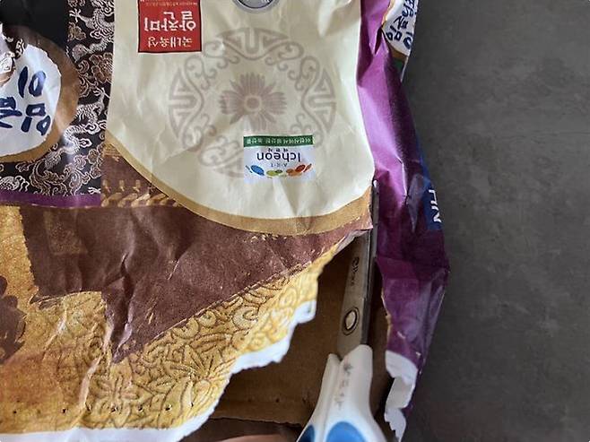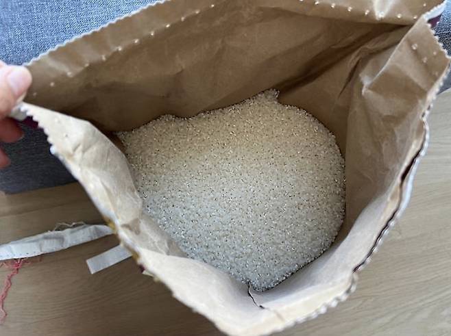 쌀 한 포대 주문해서 쌀통에 붓고 나온 쌀포대.