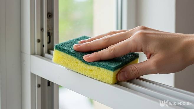 창틀이나 가구 사이 틈새는 먼지가 쉽게 쌓이지만 청소하기 어렵다. 수세미를 적당한 크기로 잘라 한쪽 면에 칼집을 낸 후 물을 적셔 닦으면 쉽게 청소할 수 있다. 틈새 깊이에 맞게 크기를 조절해 자르면 더 효과적이다.