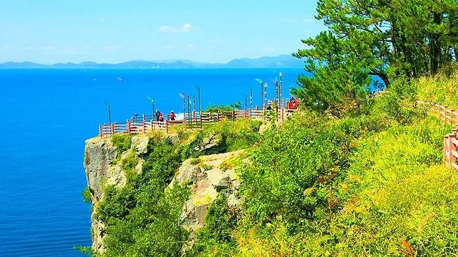 그리고 30분쯤 지나 도착하는 ‘용머리’ 지점에서는 수평선 너머 펼쳐진 다도해의 풍경과 용이 여의주를 물고 있는 형상의 바위가 어우러져 장관을 이루며, 걸음을 멈추고 한참을 바라보게 만듭니다.