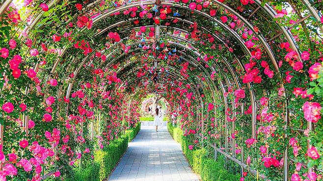 이곳의 규모를 이해하려면 숫자를 먼저 봐야 한다. 총 면적은 약 8만5000㎡로, 축구장 약 12개에 해당하는 넓이다. 이 공간에 220여 종의 장미가 16만 그루 식재되어 있으며, 개화 시기에는 약 1천만 송이가 동시에 꽃을 피운다.