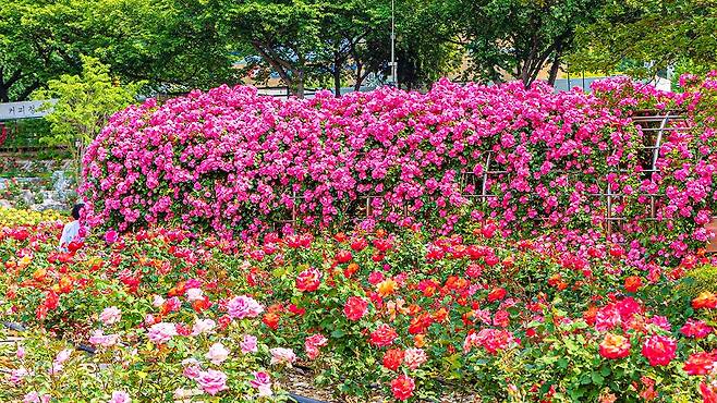 이 정도 규모는 단순한 공원을 넘어 하나의 거대한 꽃 군락지에 가깝다. 다양한 품종이 한 공간에 모여 있기 때문에 색감과 형태의 변화도 매우 풍부하게 나타난다. 대표적으로 아베마리아, 핑크 퍼퓸, 찰스톤 등 다양한 장미들이 각기 다른 분위기를 연출한다.