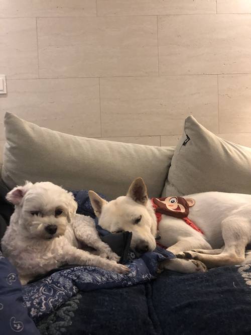 몽실이는 부모님 친구분께서 주셔서 반달이 올 때즈음 부보님께서 키우셨는데 제가 일 많을 때 부모님 댁에 반달이를 맡겼던 적이 있었는데 몽실이가 문제견이었다가 반달이가 가니깐 문제가 싹 사라지고 착한 강아지로 거듭났어요.