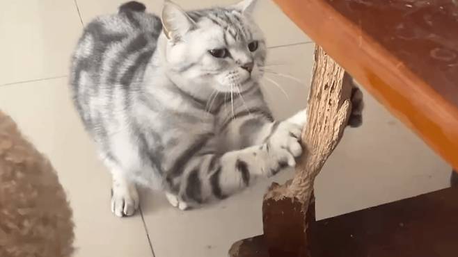 더 웃긴 건 고양이가 여러 다리를 할퀴는 게 아니라, 무조건 같은 한 다리만 집중적으로 할퀴는 겁니다. 마치 그 다리와 원한이 있는 것처럼 말이죠.