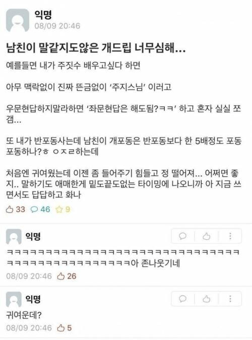 남친의 말장난에 정 떨어진다는 여자
