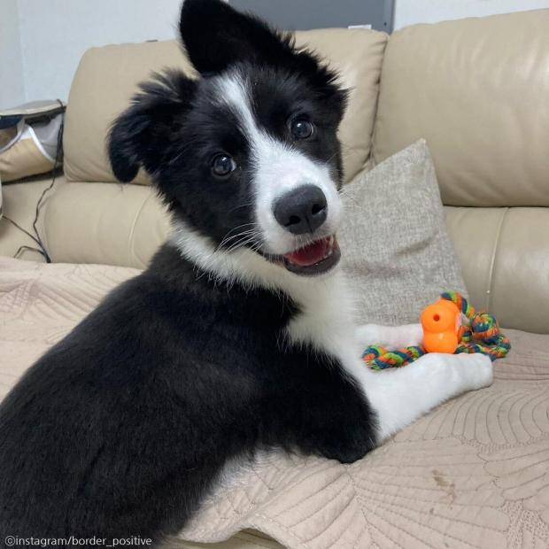 긍정이는 이제 4개월이 된 암컷 보더콜리로 장난기 많고 활발한 성격이지만 보호자 말은 잘 듣는 착한 아이란다.