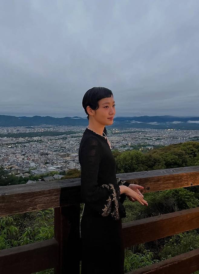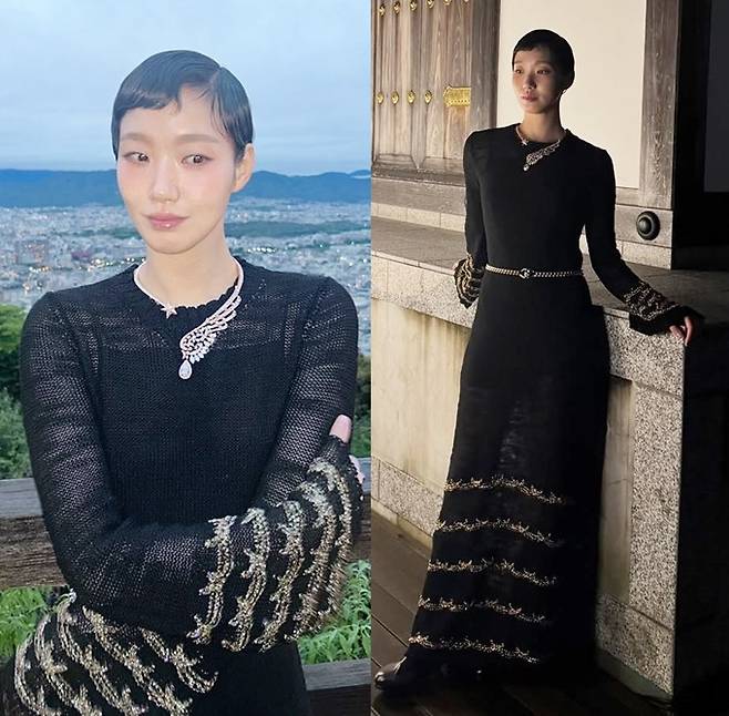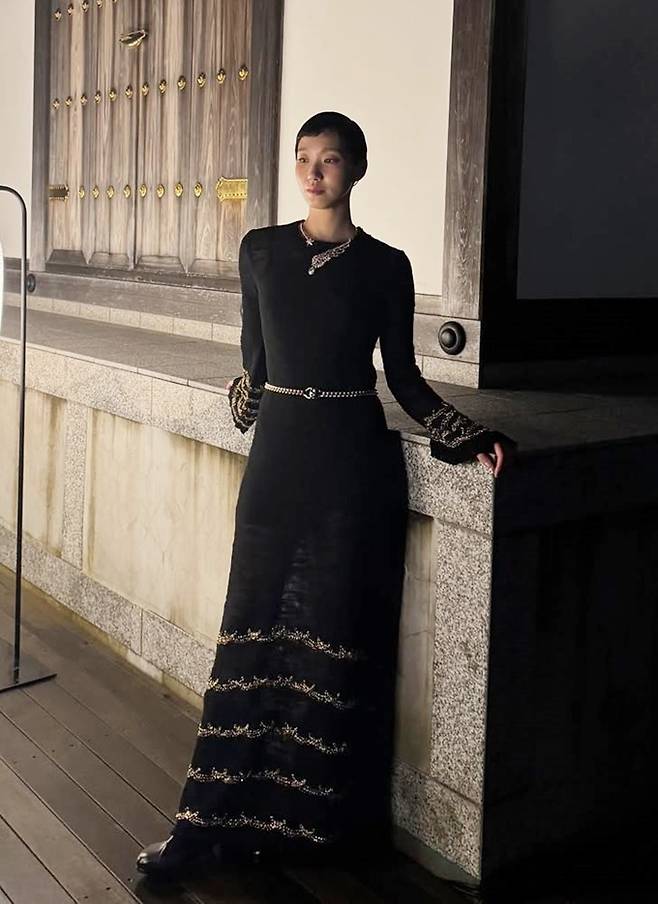 배우 김고은이 섬세한 비즈 장식의 블랙 시스루 롱 드레스룩으로 쿄토를 흔들어놓았다.