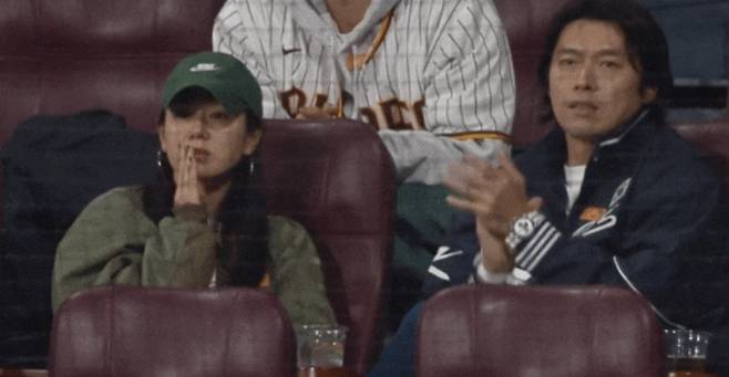 이날 현빈과 손예진 부부가 경기장을 찾아 경기를 관람했다. 이들 부부가 여행지 등에서 팬들에 찍힌 사진이나 영상이 아닌, 경기 중계 카메라를 통해 함께 있는 모습이 생중계 되기는 처음. 나란히 모습을 드러내기도 2022년 3월 결혼 이후 처음이다.