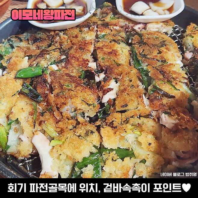 비 오는 날에 꼭 생각나는 파전! 이모네왕파전은 전통 파전을 전문으로 하는 전집입니다. 회기에 파전골목이 있는 거 알고 계셨나요? 이모네왕파전은 회기 파전골목에 위치하고 있어요.
